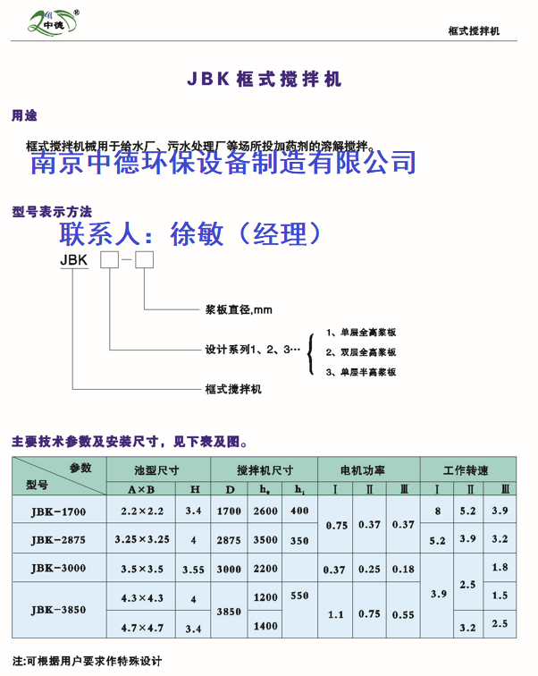 詳細信息 K框式攪拌機 1、概 述 1.1 根據客戶的設計要求,提供的框式攪拌機,符合工況的設計要求。 1.2 提供的框式攪拌機能夠滿足有關設計、制造、安裝和驗收的標準。 2、技術規格