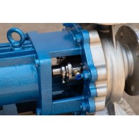 1-泵體 2-葉輪 3-密封環 4-葉輪螺母 5-泵蓋 6-密封部件 7-中間支架 8-軸 9-懸架部件 IH型不銹鋼化工離心泵泵蓋通過止口固定在中間支架上,然后通過泵體與中間支架止口的聯接把泵蓋夾緊在中間,泵體是軸向吸入,徑向排出,腳支承式,可直接固定在底座上。懸架部件通過止口固定固定在中間支架上,并用懸架支架支撐在底座上。為拆卸方便,設計了加長聯軸器,檢修時可以不拆卸進出口聯接管路,泵體和電動機。只需拆下聯軸器的中間聯接件,即可退出轉子部件進行檢修。這是國際上通用的一種結構形式。 泵的旋轉方向:泵通過加長聯軸器由電動機直接驅動,從電動機端看,按順時針方向旋轉。 泵的密封型式采用填料密封或機械密封,由用戶根據需要適用,同時根據需要允許采用適合于ISO3069規定的密封空腔尺寸和其他結構的軸封型式,如帶波紋管的機械密封和付葉輪密封等等。 填料密封:泵蓋內設有填料函,采用軟填料密封,填料函內可通入有一定壓力的水,供密封冷卻,潤滑、清洗用。 機械密封:單端面機械密封和雙端面機械密封兩種型式,密封腔內通入一定壓力的水,沖洗磨擦兩端面,同時起冷卻作用。 三利·IH型不銹鋼化工離心泵注意事項:IH型不銹鋼化工離心泵可根據不同的使用條件安裝不同形式的機械密封,(如內裝單端面平衡和非平衡型,雙端面平衡型及非平衡型,外裝式機械密封等。)根據所選用密封型式的不同,其使用方法和注意事項也有所不同。下面僅提幾點一般應注意的事項。 上海三利泵業(集團)有限公司生產的IH型不銹鋼化工離心泵,產品在不斷開發中,型號參數太多不能完全做在網站上顯示,若網站上的參數無法達到您的要求,請致電「三利」會為您解答,歡迎垂詢!