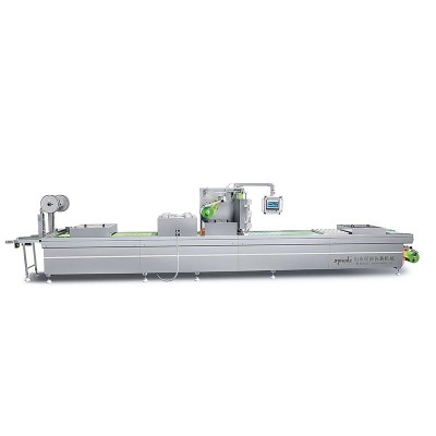 全自動真空包裝機,該機具備了自動化生產的包裝需求,特別適應于批量化生產,該機的工作原理是使用成形模具,先把薄膜加熱,而后再用成形模具沖成容器的形狀,然后將包裝物裝入成型了的下膜腔中,再進行真空包裝。整個操作過程中由設備自動化完成,省去了傳統流水線需要大量人工的包裝需求,同時為企業節省了人工成本。